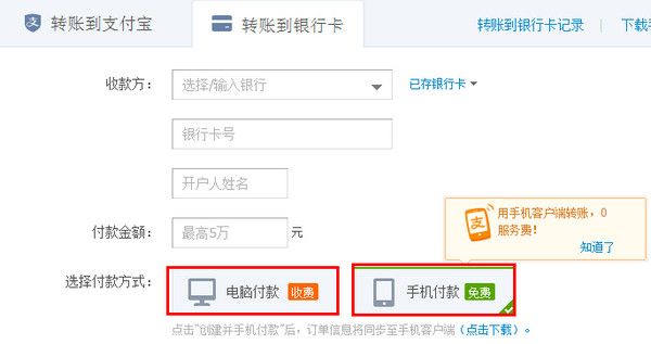 2、填写付款信息,选择付款方式 :【电脑付款】或【手机付款】。