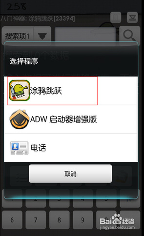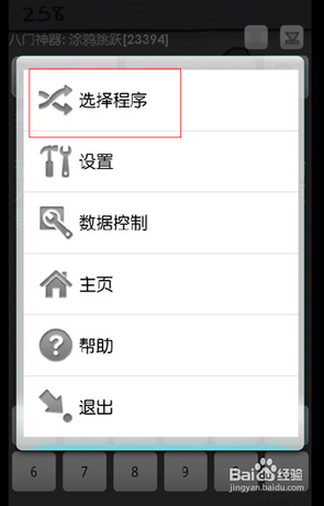 不要退出修改对象,点击八门神器的图标,点击meun键,选择程序选择你需要修改的软件,这里是选择涂鸦跳跃。