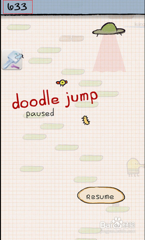 按home键返回到桌面,再打开刚才的游戏,再玩一点,也就是给分数一个变量。比如说现在玩到633分。