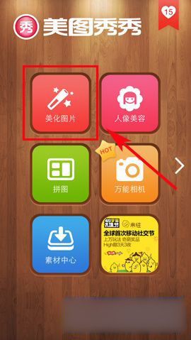 1、打开美图秀秀进入(点击下载),然后点击【美化图片】,选择自己需要打马赛克的照片,把下面的工具栏往左拨动。