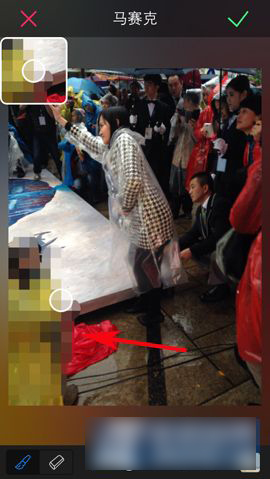 2、在拨动【工具栏】时记住留意下【马赛克】的工具,看到后点击【马赛克】工具,选择后只需要在图片上进行涂鸦即可。