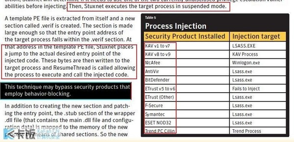 图:Stuxnet用“父进程注入”攻击破坏的杀毒软件列表,其中第1、2位即为卡巴斯基
