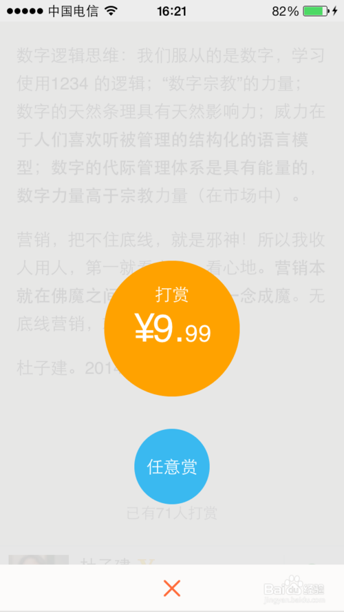 5、选择打赏默认金额或是任意赏。