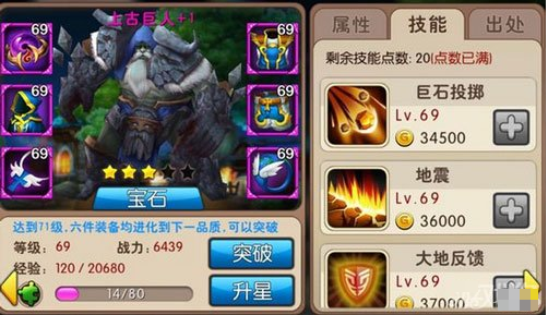 石巨人69紫加1,技能全满 ,宝石 *体力80,*力量50,*法防590,攻击590(可换敏捷)。