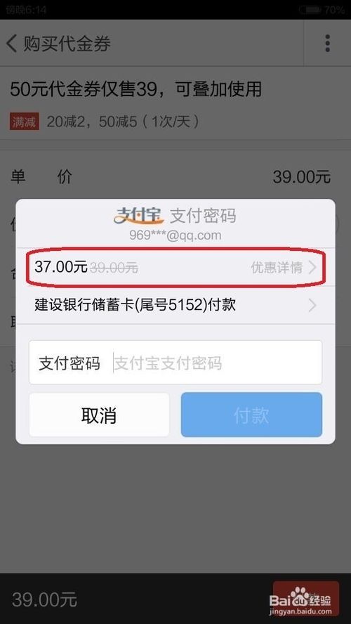 5、找到你想要购买的代金券(这里以39元可以买50元的代金券为利)