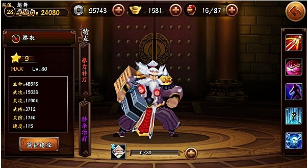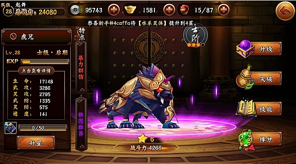 在游戏刚刚开始的时候,只装备主角凯旋,紫色虎兄,然后把装备都提升到目前的极限后去打副本。第一天因为只装备了两个英雄所以战力有些不足但是没问题,第二天你就可以得到一个加血奶妈王哓哓了。接着把所以资源也用到王晓晓身上,靠这三个人物推副本。
