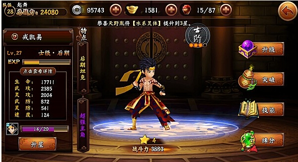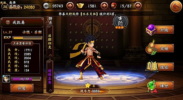 前期玩家的战斗值都不高,缘分提供的属性加成就很可观。每个角色拥有缘分英雄数量不同,英雄不需上阵即可为英雄提供属性加成。比如戎凯旋拥有4个缘分英雄,王晓晓可为他提供750的灵攻,再加上灵系灵体的助威(提供600灵攻),一共提供1350的灵攻,相当于人品灵攻武器的属性。还有戎凯易的缘分加成为戎凯旋提供6000血量,相当于人品帽子的属性。前期玩家大部分资源给了戎凯旋,这样他的所有属性比其他英雄高,可以暂时在擂台上充当前排。