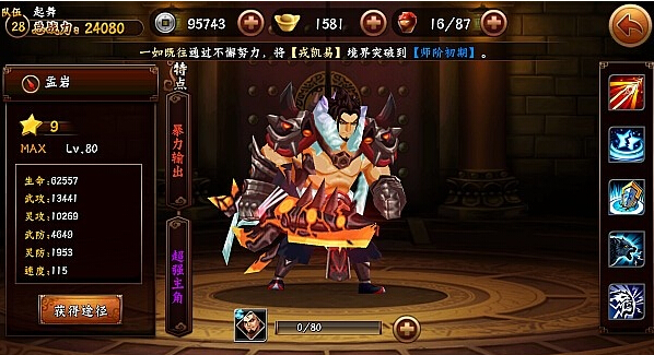 孟岩在团队的地位主要杀伤敌方前排,天赋技能(大道至简和超级精英)提升自身武攻和命中和减少前排敌方武防,终极技能提高上阵英雄1950点武攻。布阵时和林农站一列,提供的武攻加成配合林农超高的单体爆发,对敌方的英雄有威慑力。孟岩、戎凯旋和戎凯易同时上阵,可互相提升大量血量,相当于6级的生命宝石。令大部分玩家失望之处是想把孟岩升到9星,最低要求是VIP13。