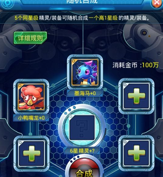 6星合成7星需要500万金币。5个六星装备或者精灵