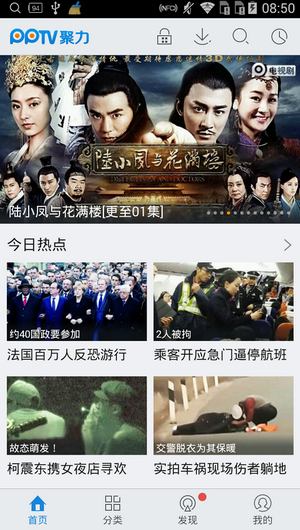 第一步,打开手机桌面上的“PPTV”,然后进入首页,会看到如下图界面: