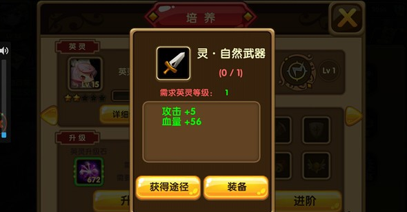 英灵的进阶则需要集齐6件装备方可,点击装备栏有提示装备出处