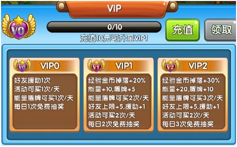 答:玩家可以通过充值提升VIP等级。升级VIP可以提升体力、盾牌好友数量上限、提升经验金币数量、额外购买活动次数、每日免费抽奖、解锁角色职业和获取VIP道具奖励。