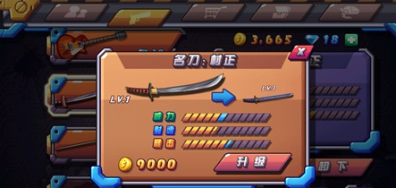 前期很简单,按照任务指引来,他让你升级就升级不要把钱去买其他东西,可以把初级手枪升到3级,主要让玩家熟悉游戏操作和内容,这样通关前几关到第四关我们就有第一笔钱购买名刀:村正,这是我们前期很好用的武器。