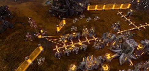 接着等到第二个手出来,出修理厂修好初始的那个史诗单位,然后先往右边进攻,侦察机开视野,史诗单位轰炸同时边飞边不停建造第三个轻型单位提高输出,每看到一个矿就停下,修分矿,并炸平周围的一切,然后就是躲猫猫时间,慢慢把地图上所有矿都占领吧,因为goo可以翻山越岭穿越地形,只好在泉水处守株待兔了,如果还有漏网之鱼看看是不是躲在哪个山坡上