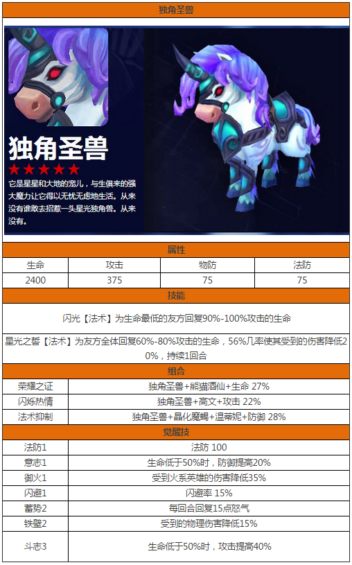 作为魔力时代水系五星辅助英雄的独角圣兽虽然没有任何的攻击技能,但它却有着其它英雄所不能替代的作用和独特之处,那么它的独特之处又体现在什么地方呢?它的技能到底又如何呢?下面小编就为大家带来魔力时代独角圣兽的详细介绍,感兴趣的朋友赶紧来了解一下吧!