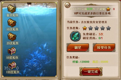 1.每日最多可以完成20次任务,每完成一环,可得到大量经验与阅历任务星级越高,奖励加成越多哦;