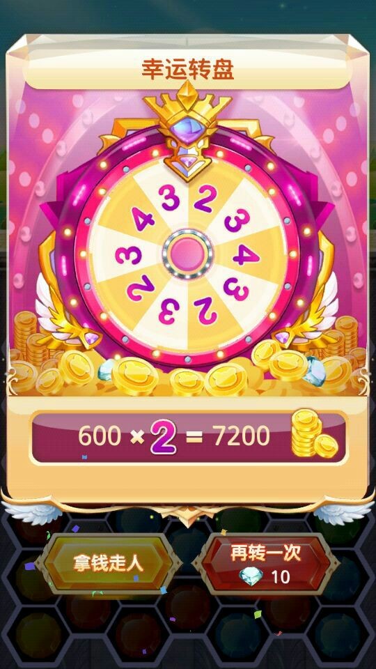1、金币关的转盘在转第二次时,连点两下(一定要快),就会产生如图的效果,出来之后,跟转三次一样,出来只扣一个钻石——这一招算不算是大赚了一把呢?