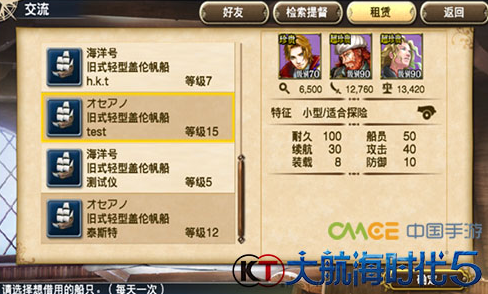 在左侧菜单中选你中意的船。借船功能每天只能使用一次哦,如果还需要好友来助战,则需要等到次日9:00的重置了,所以,小伙伴们切记要