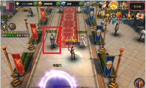3、然后来到中间传送门的上方便可以找到礼包大使。