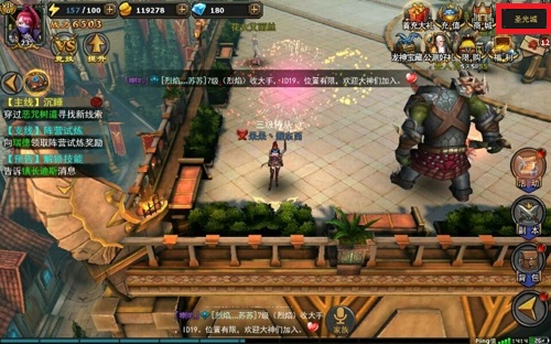 1、进入界面后先来到圣光之城,如果不是圣光之城的话可以点击右上角的城市名字打开大地图。
