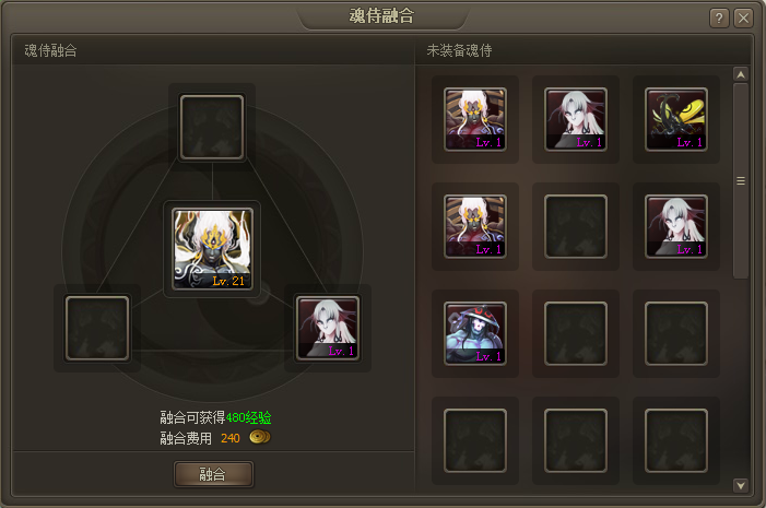 低级魂侍不可融合高级魂侍,融合可获得经验
