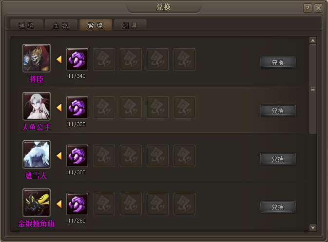 达到需求数量的魂侍碎片可兑换相应的魂侍
