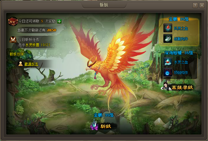 斩妖可邀请好友一起战斗分享需求,提高战斗效率,消费元宝进行‘高级寻妖’获得更高级的怪物