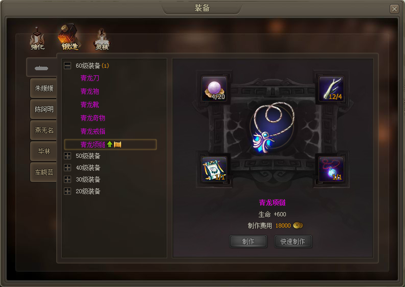 玩家收集需求的材料及制作书即可锻造更高级别的装备