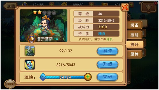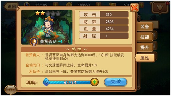 选择属性页签,可以查看仙人特性,以及仙人的主要属性等信息。