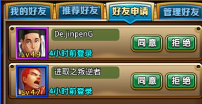 当其他玩家添加自己为好友时,对方发送的请求也可以在这个好友申请界面上看到