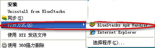 4.安装完后,右键点击少年三国志apk文件,选择打开方式选择“bluestacks”。