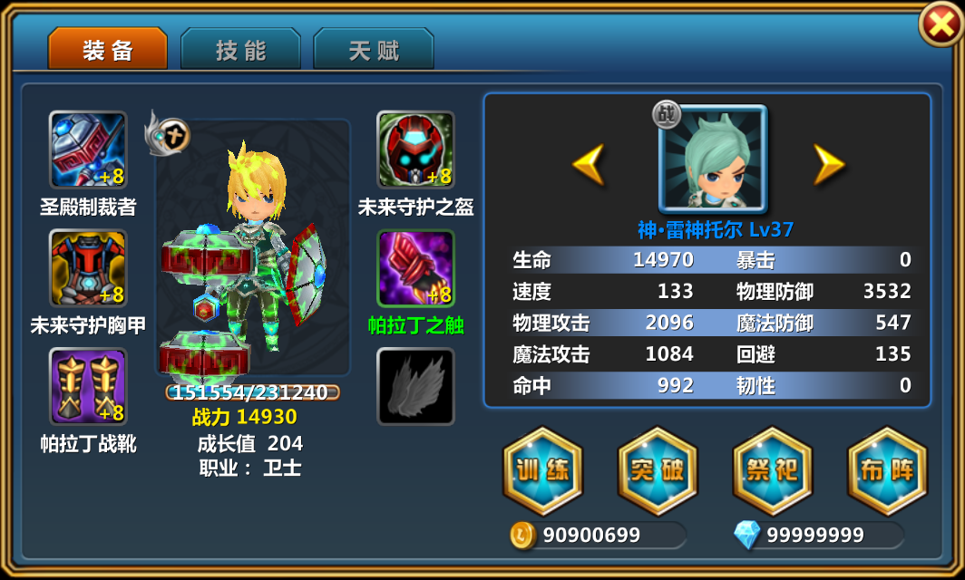 每个部位都有一星~六星的装备,每件装备最高都可以强化到16级