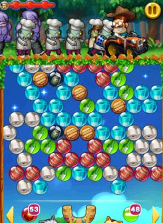 当《全民泡僵尸》的泡泡阵列堆积过多,抵达画面最下方的红线处时,游戏便会失败结束。与市面上消除类手游不同,玩家需要在积极消除泡泡的同时,将指定的番茄泡泡击落,才能取得真正意义上的胜利。每关关卡结束后,会有幸运抽奖出现,这时候就要看玩家运气怎么样了。