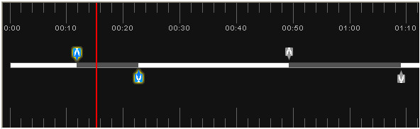 2、将播放指针移到需要剪切的位置,点击视频剪辑,时间轴上会出现剪切图标,拖动图标调整剪切范围,剪切图标之间的内容表示删除部分。如需剪切多个片段,则添加多个剪切区,步骤同上。(注:如需恢复被剪切的视频内容,播放指针移到剪切区内,点【取消剪切区】即可。