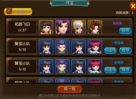 4、夺宝的时候还是选择级低点的,参考对方阵容,这样成功率能提高很多。