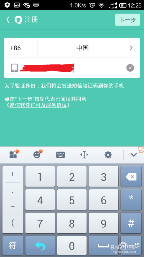 2、一般需要用户注册,注册相对简单,主要用户输入手机号,然后点击“下一步”,输入您收到的验证码,然后再点击下一步,就可以完成注册了。注册过程很简单。当然之前注册过易信的用户可以直接登录易信。