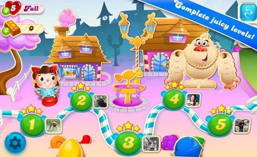 彩色糖果:如果把五颗糖果连成直线消除,就可以变出一颗彩色糖果。彩色糖果和任意相邻的糖果互换,就会把全屏幕上,与互换糖果颜色相同的糖果一并消除。