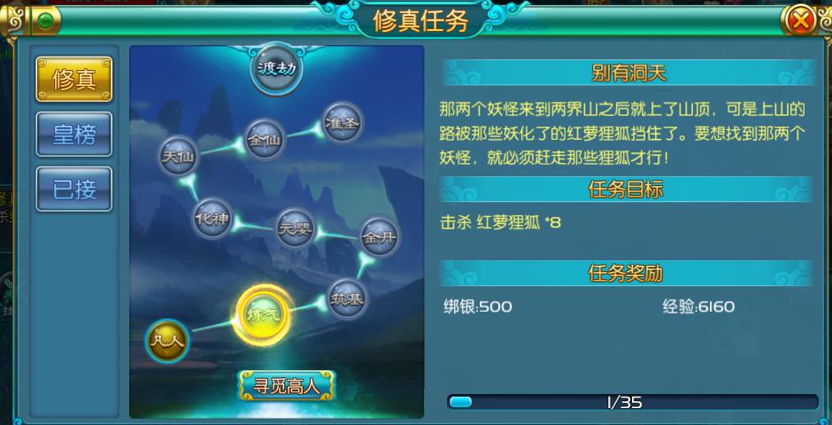 每触发一个阶段的修真任务玩家就可以升阶一次血统星级,修真任务每10级为一个阶段