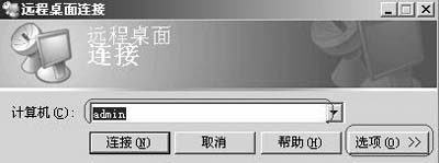 如果客户端使用的是Windows XP或者也是Windows Server 2003,那么访问起来非常简单,不需要安装任何程序。因为它们自身就有“远程桌面”连接的客户端程序。连接方法如下:依次打开“开始→程序→附件→通讯→远程桌面连接”,会弹出“远程桌面连接”对话框(如图3所示)。此时,在计算机文本框中输入远程服务器的标识名称或者该服务器的IP地址。按下[连接]按钮就打开了服务器的远程登录窗口。登录的过程和在本地登录是一样的,在相应的位置输入授权的用户名和口令就可以了。另外,在登录之前,还可以利用“远程桌面连接”对话框中的[选项]按钮对即将登录管理的窗口进行属性设置。比如:远程桌面窗口的大小、使用的颜色数等。