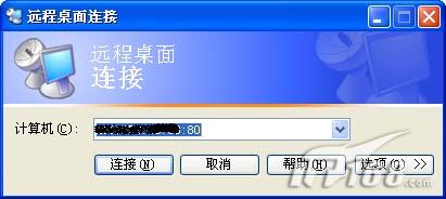 第四步:这样我们就可以在网络中任意一台安装了远程桌面登录器的计算机上连接刚刚设置的计算机了,使用的端口是80端口。值得注意的是在输入被访问计算机IP地址时需要使用类似ip:80的形式。(如图3)
