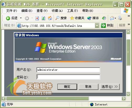 在“开始”→“运行”,在运行框中键入“HTTP://服务器/TSWEB”→“确定”,在IE中出现(如图3)所示网页,若是第一次在本客户端使用,会要求下载ActiveX 控件,在“服务器”后的文本框中键入服务器名,在“大小”后的下拉列表中选择远程桌面的分辨率,请选择“全屏”,(否则远程桌面会显示在浏览器中),回车后即可看到登录窗口,键入用户名与密码即可进入远程桌面。其它就同使用本地机一样。(如图4)