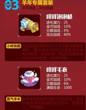 全民飞机大战羊年专属套装怎么样 咩咩套装属性技能介绍