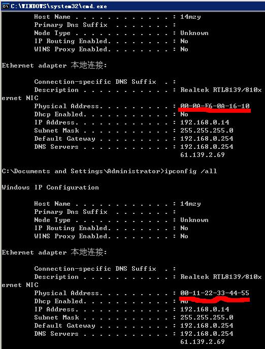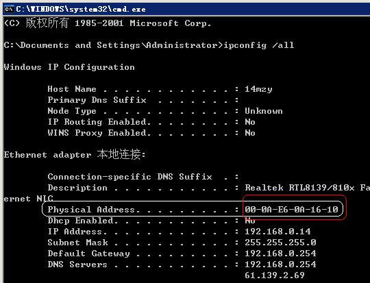 看到没有,我计算机本机的MAC地址是这个