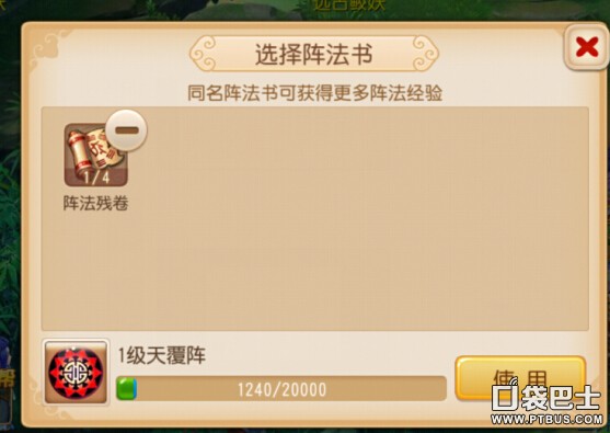 2、通过阵法残卷,虽然阵法残卷没有阵法书为需要升级的阵法升级多,但是阵法残卷相对于阵法书来说比较容易获得,大家在挖宝的时候就会获得阵法残卷。