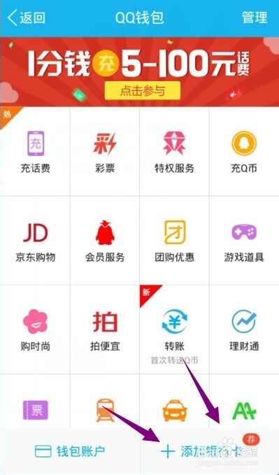 2、如果你的QQ钱包没有绑定过银行卡,在最右下面就可以看到绑定银行卡的提示,点击那里可以进入绑定的流程。