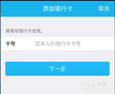 3、输入你要绑定的银行卡号,输入完后它会提示你的相关信息,最重新的就是输入银行预留手机号码,然后再点击【下一步】