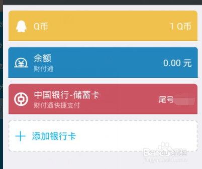 在这个界面中就可以看到刚刚绑定的那一张中国银行的银行卡。以后就可以通过QQ钱包的快捷支付款了。