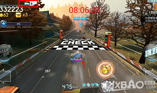 图一是游戏一开始就截的图,能量为“大鸭蛋”,测试时尽量不吃金币和超车,最后跑到第5加油站时集满大概70%左右的能量(见图二)!因此:平跑也是可以积攒能量滴!