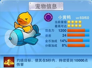 全民飞机大战小黄鸭属性: