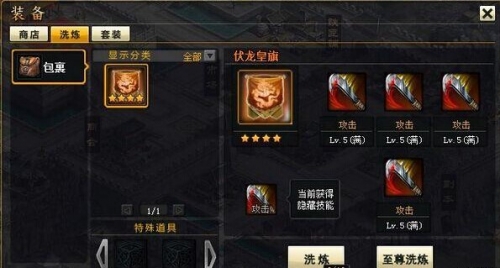 拥有指定技能的橙色4星装备(将3星橙装的3个不同技能洗成满级同技能装备,就会变成4星橙装),包括“武器、甲胄、符印、坐骑、兵法和旗帜”6个部位。